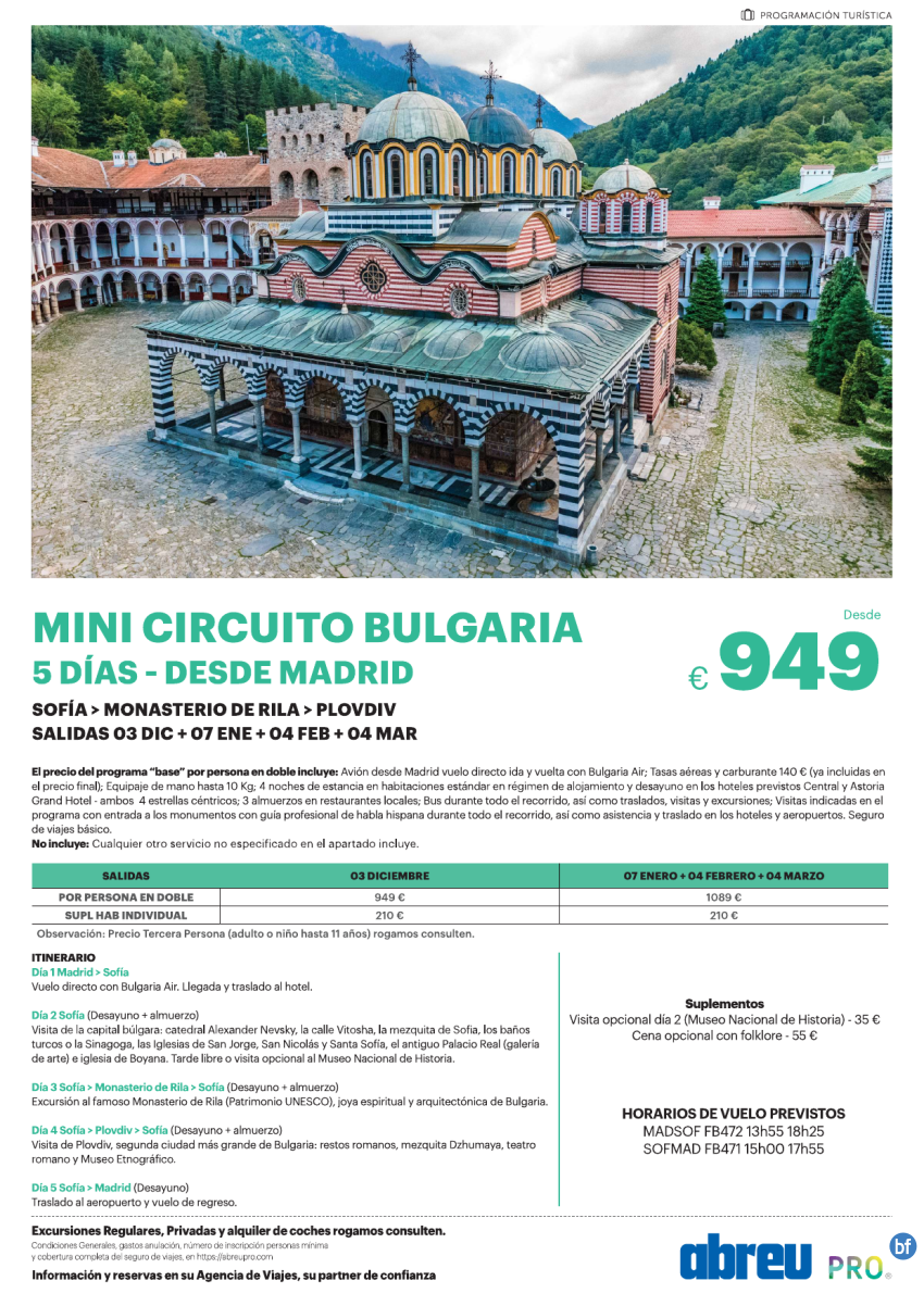 Mini Circuito Bulgaria desde Madrid 5 días Salidas Diciembre 2025 a Marzo 2026